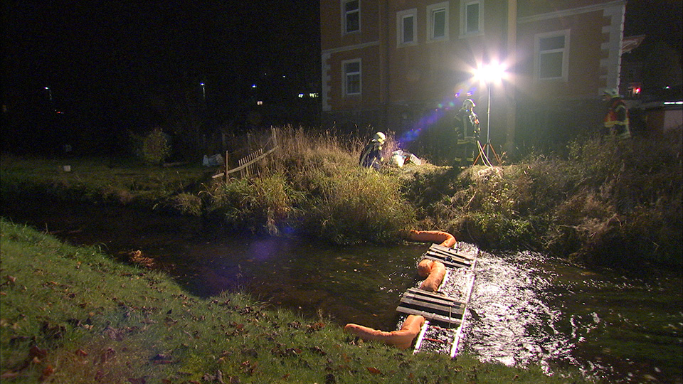 Großeinsatz am Freitagabend in Oberwiesenthal wegen der Verunreinigung des Pöhlbachs.